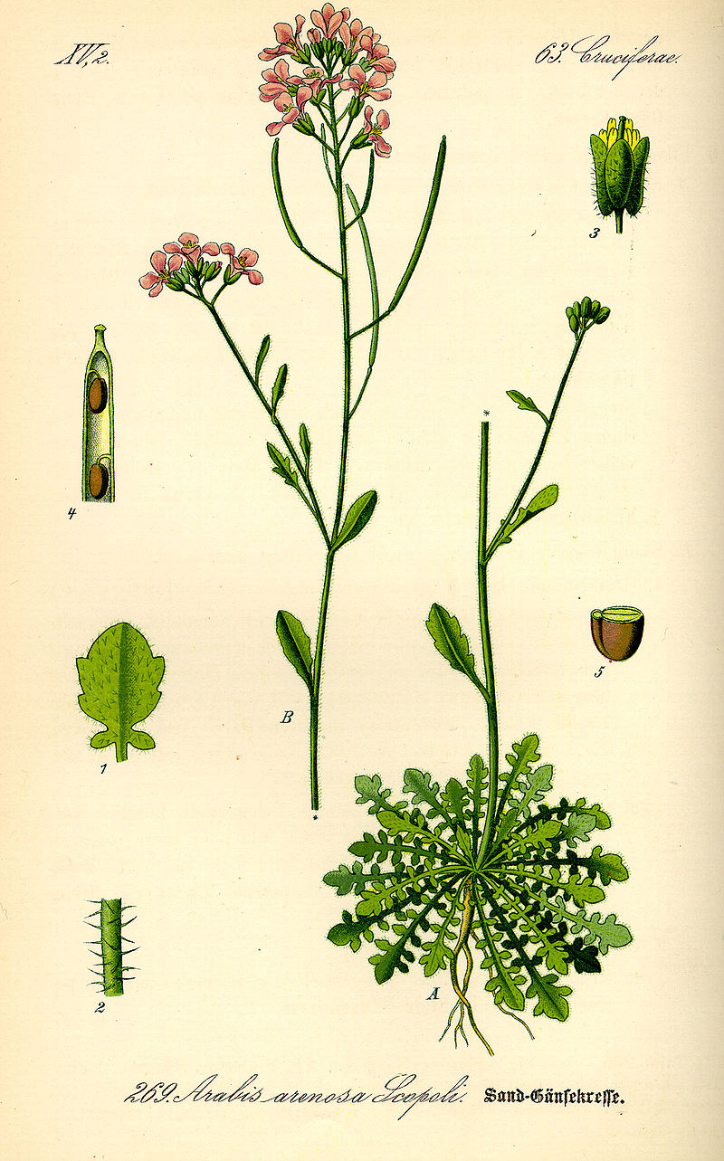 Arabidopsis arenosa, the sand rock-cress, is a species of flowering plant in the family Brassicaceae. It is found mostly in Central Europe in both a diploid and an autotetraploid form. This sets it apart from the other, mostly diploid, Arabidopsis species including the closely related Arabidopsis lyrata or Arabidopsis thaliana, the model plant species.