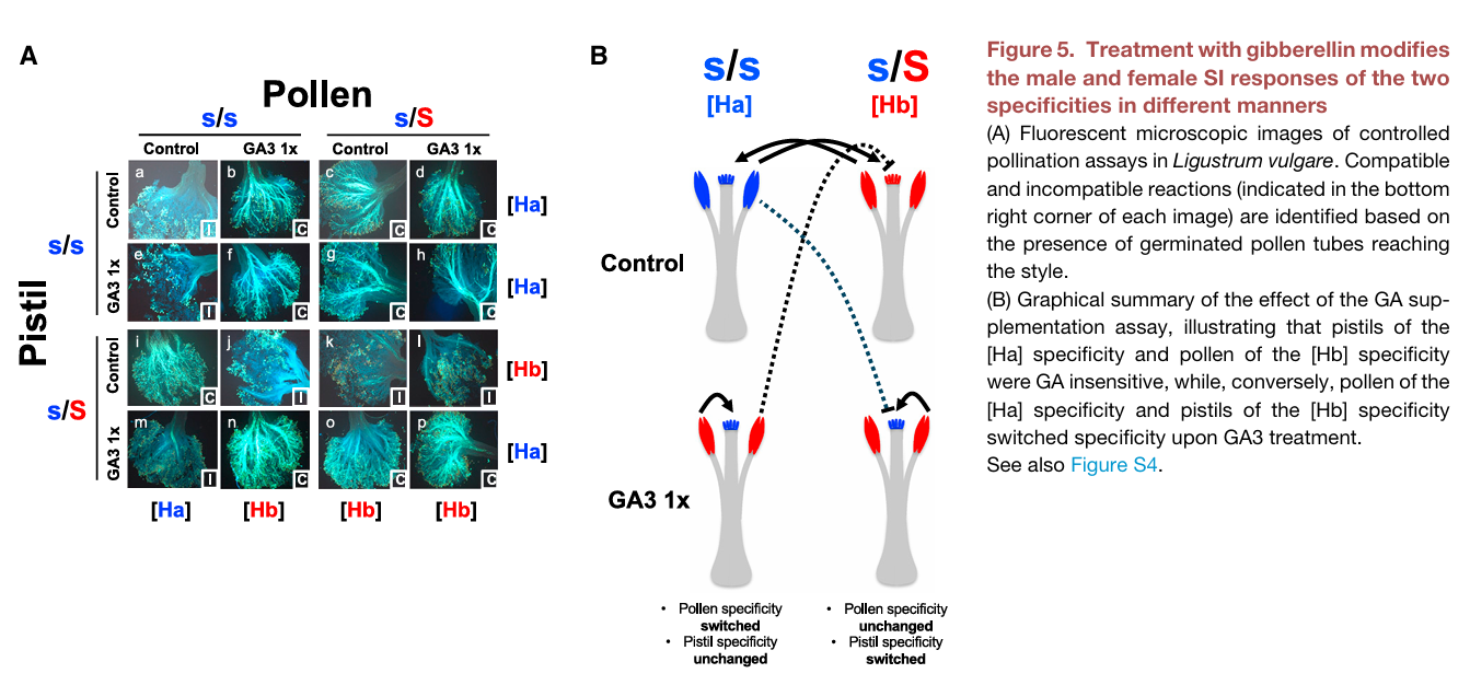 Castric V, Batista RA, Carré A, Mousavi S, Mazoyer C, Godé C, Gallina S, Ponitzki C, Theron A, Bellec A, Marande W, Santoni S, Mariotti R, Rubini A, Legrand S, Billiard S, Vekemans X, Vernet P, Saumitou-Laprade P. The homomorphic self-incompatibility system in Oleaceae is controlled by a hemizygous genomic region expressing a gibberellin pathway gene. Curr Biol. 2024 May 6;34(9):1967-1976.e6. doi: 10.1016/j.cub.2024.03.047.