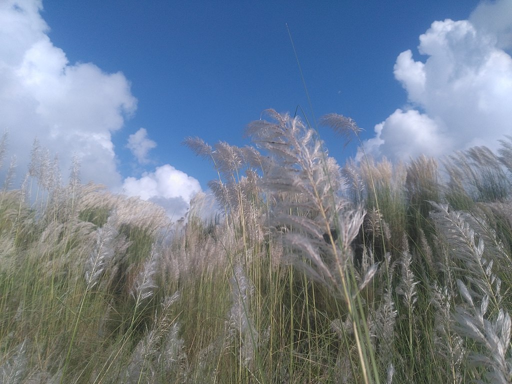 Saccharum spontaneum (wild sugarcane, kans grass) is a grass native throughout much of tropical and subtropical Asia, northern Australia, and eastern and northern Africa. It is a perennial grass, growing up to three meters in height, with spreading rhizomatous roots. The plant has hybridized with Saccharum officinarum, a domesticated sugarcane. The hybridization has produced Saccharum barberi and Saccharum sinense.