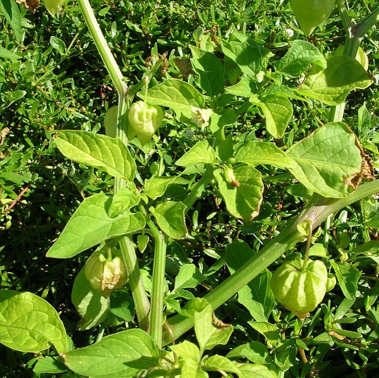 Physalis angulata is an erect herbaceous annual plant belonging to the nightshade family Solanaceae. Its leaves are dark green and roughly oval, often with tooth shapes around the edge. The flowers are five-sided and pale yellow; the yellow-orange fruits are borne inside a balloon-like calyx. The exact native range is uncertain. The species may be naturally endemic to Australia or the Americas or the native range may encompass both the Americas and Australia. It is now widely distributed and naturalized in tropical and subtropical regions worldwide. The plant produces edible fruit that can be eaten raw, cooked, jammed, etc. However, all other parts of the plant are poisonous. Members of the Toba-Pilagá ethnic group of Gran Chaco traditionally eat the ripe fruits raw. Unripe berries and leaves are considered poisoned. Side effects after ingestion can occur as headache, stomach discomfort, decreased temperature, expanded pupils, nausea, diarrhoea, cardiac and breathing depression, loss of consciousness, fatal schistosomiasis.