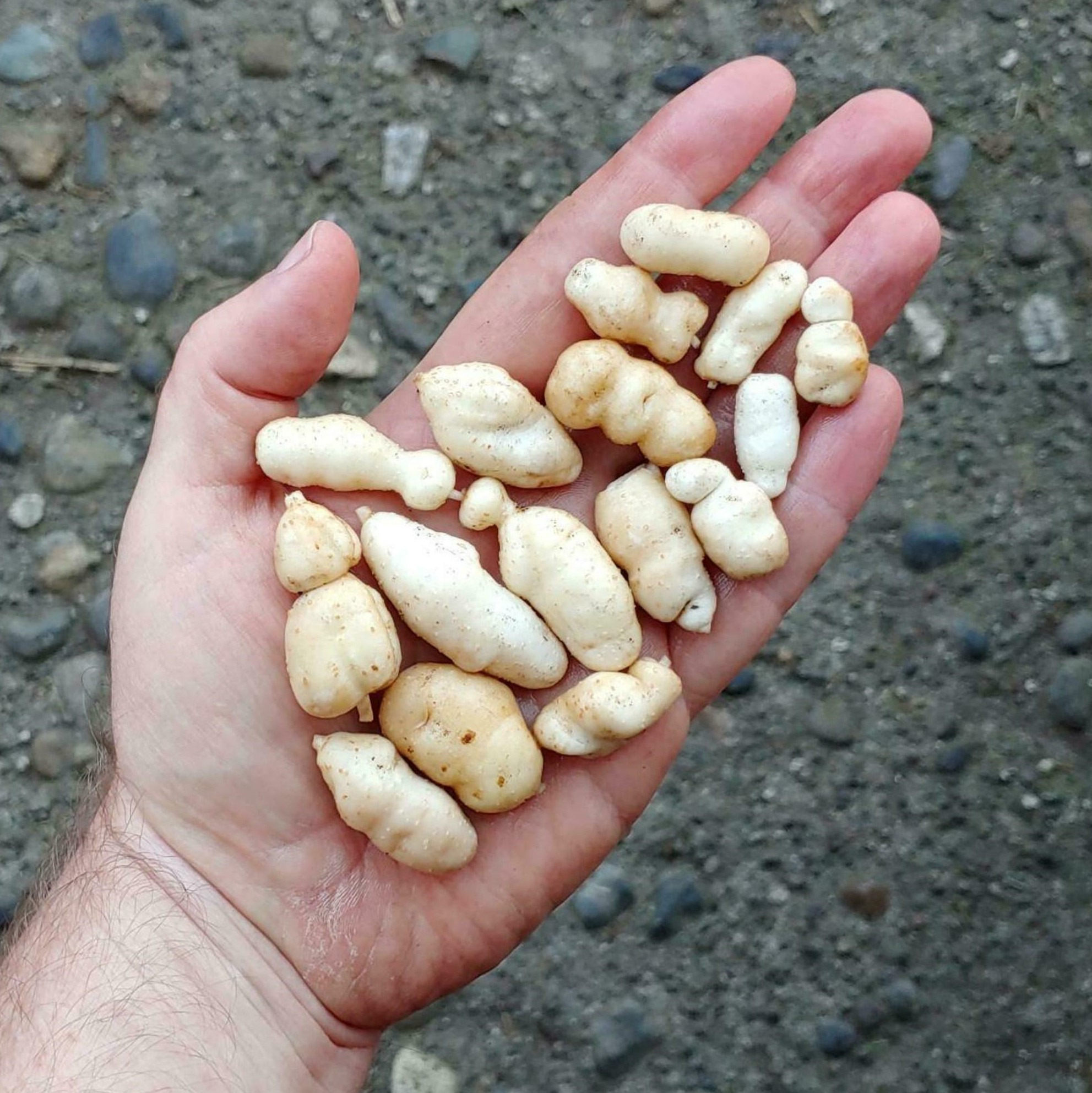 Solanum cajamarquense is an unusual species, with a small distribution in northern Peru. It grows at mid-elevations of the Andes from about 6500 to 8500 feet. Plants roughly 16 to 20 inches tall. Foliage and stems are extremely pubescent. Stolons long, exceeding two feet. Tubers small and moniliform, like beads on a string. Flowers white. Berries small, less than 1/2 inch, round to slightly compressed, green, some speckled or striped (or both).