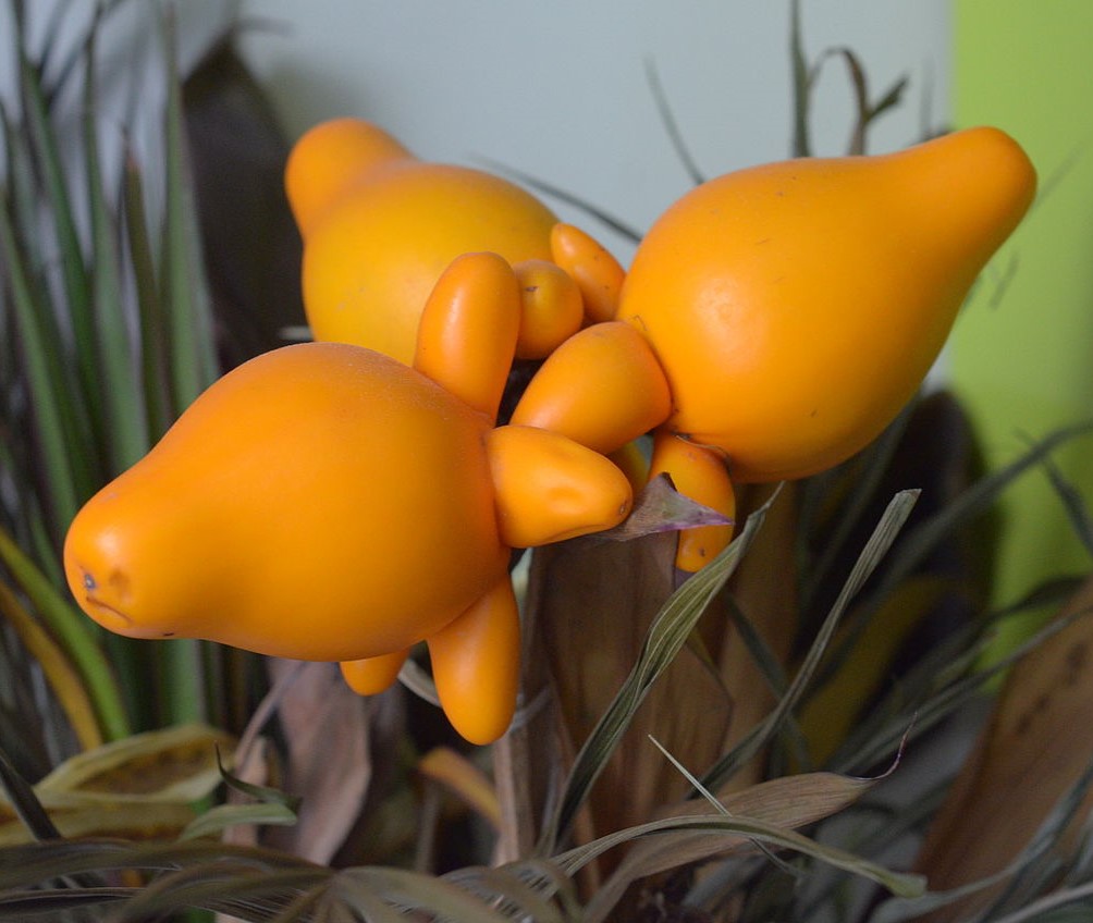 Solanum mammosum, commonly known as nipplefruit, fox head, cow's udder, or apple of Sodom, is an inedible Pan-American tropical fruit. The plant is grown for ornamental purposes, in part because of the distal end of the fruit's resemblance to a human breast, while the proximal end looks like a cow's udder. It is an annual in the family Solanaceae, and part of the genus Solanum, making the plant a relative of the eggplant, tomato, and potato. This poisonous fruit is native to South America, but has been naturalized in Southern Mexico, Greater Antilles, Central America, and the Caribbean. The plant adapts well to most soils, but thrives in moist, loamy soil.